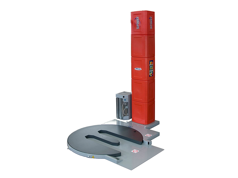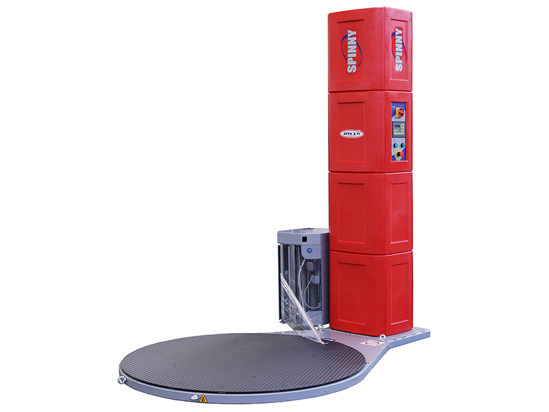 - Banderoleuses à plateau tournant pour faibles et moyennes cadences,