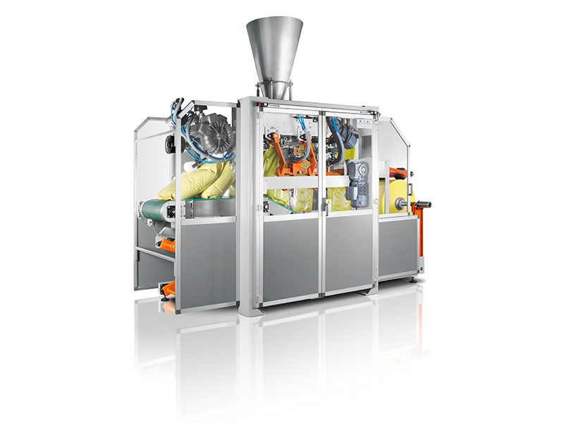 Cette gamme d'ensacheuses, dites Form-Fill-Seal, est destinée à former, remplir et fermer des sacs plastiques polyéthylène (PE) à partir de bobines de film tubulaire pour le conditionnement de produits en poudres, granulés et morceaux. Elles sont disponibles en plusieurs versions conçues pour répondre aux différents niveaux de productivité (jusqu’à 1.600 sacs/heure) et produisent des sacs de volumes allant de 5 à 80 litres, de type coussin ou avec soufflets (préformés).